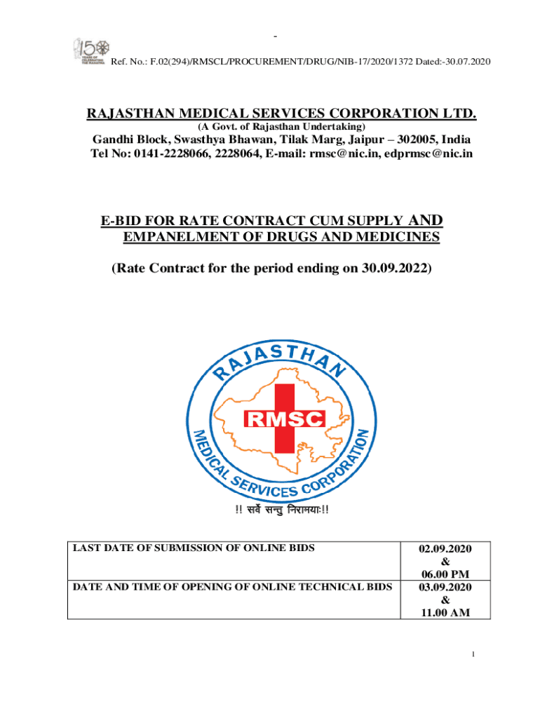 Get the free NIB 172020.pdf - Rajasthan Medical Services Corporation