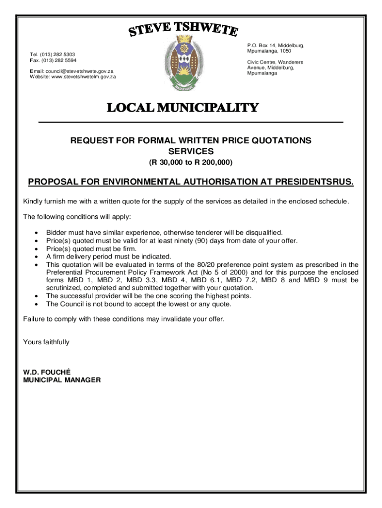 Get the free QUOTATION FOR ENVIRONMENTAL AUTHORISATION AT PRESIDENTSRUS