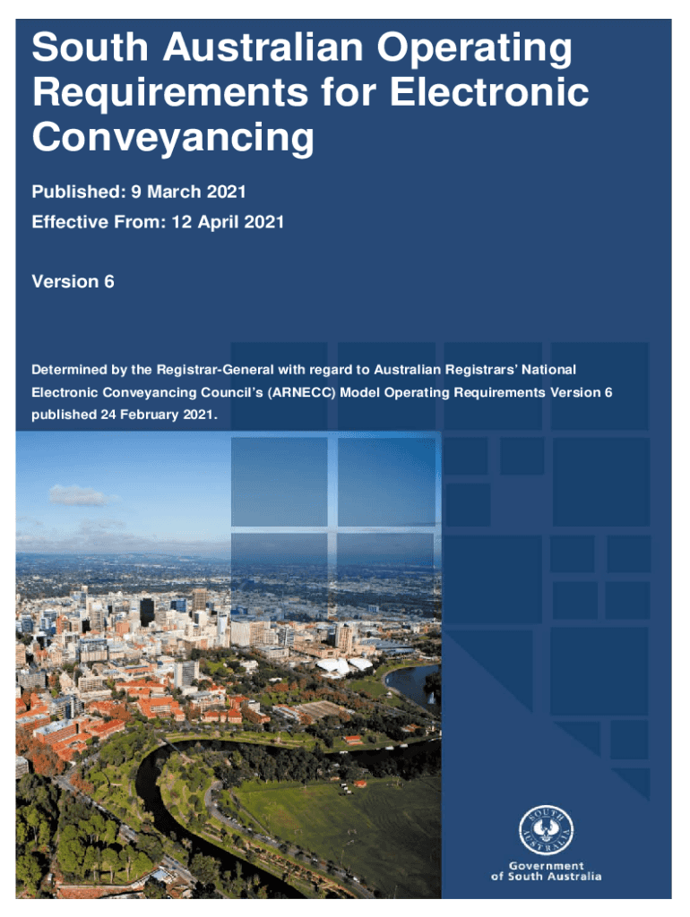 South Australian Operating Requirements for Electronic Conveyancing Published: 9 March 2021 Effective From: 12 April 2021Version 6Determined by the RegistrarGeneral with regard to Australian Registrars