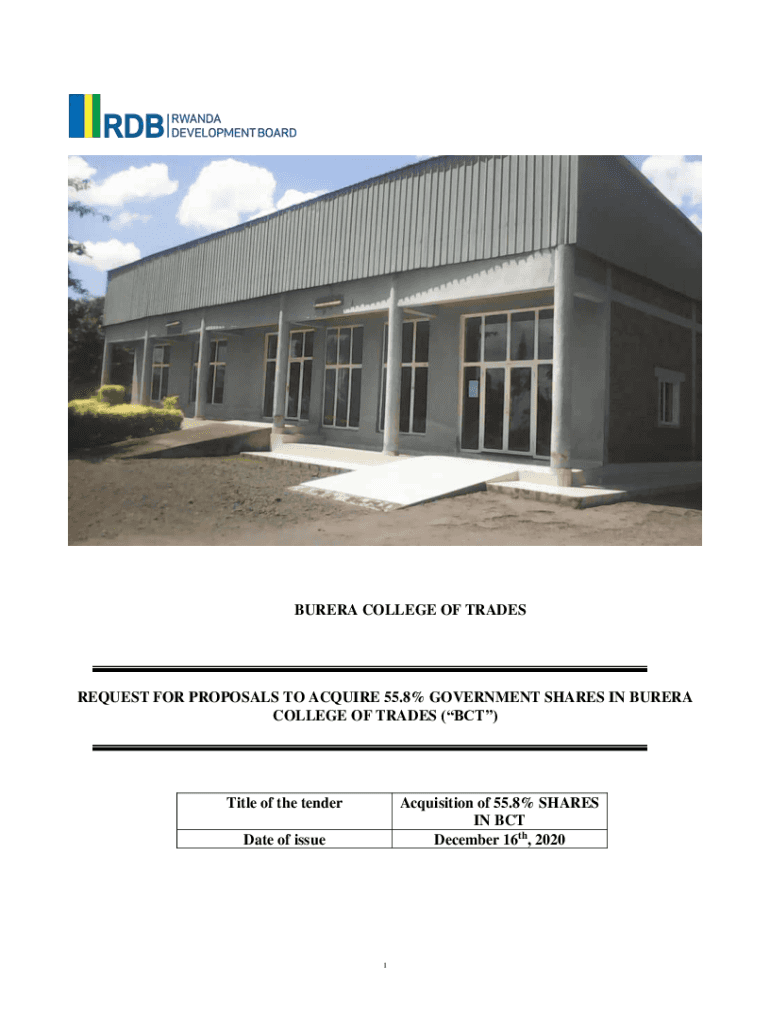 BUR ERA COLLEGE OF TRADESREQUEST FOR PROPOSALS TO ACQUIRE 55.8% GOVERNMENT SHARES IN BUR ERA