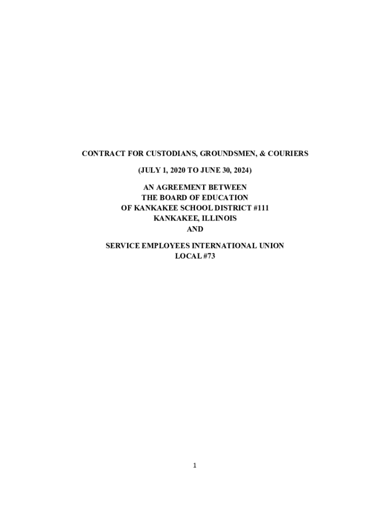 CONTRACT FOR CUSTODIANS, GROUNDSMEN, & COURIERS (JULY 1, 2020, TO JUNE 30, 2024) AN AGREEMENT BETWEEN THE BOARD OF EDUCATION OF KANKAKEE SCHOOL DISTRICT #111 KANKAKEE, ILLINOIS AND SERVICE EMPLOYEES