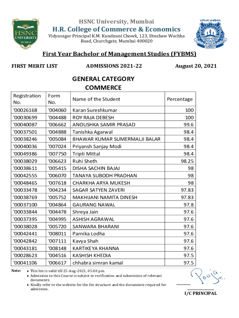 HSBC University, Mumbai. R. College of Commerce & Economics Vijayanagar Principal K.M. Mundane Chow, 123, Dins haw Dacha Road, Churchgate, Mumbai 400020First Year Bachelor of Management Studies (FY