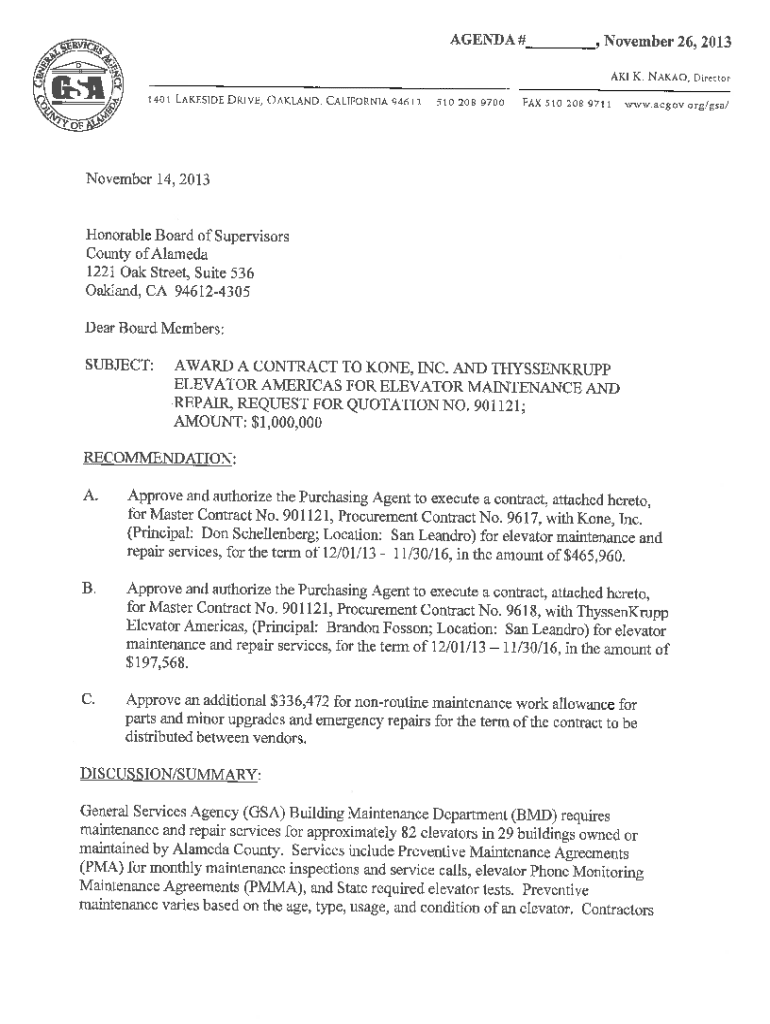 Master Contract No. 901121, Procurement Contract No. 9617COUNTY OF ALAMEDA