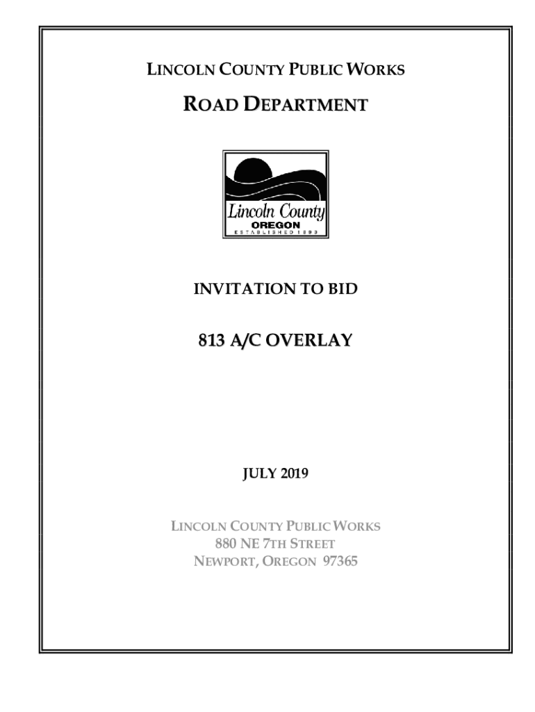 LINCOLN COUNTY PUBLIC WORKLOAD DEPARTMENTINVITATION TO BID813 A/C OVERLAYJULY 2019 LINCOLN COUNTY PUBLIC WORKS 880 NE 7TH STREET NEWPORT, OREGON 97365LINCOLN COUNTY INVITATION TO BID FOR PUBLIC IMPROVEMENT