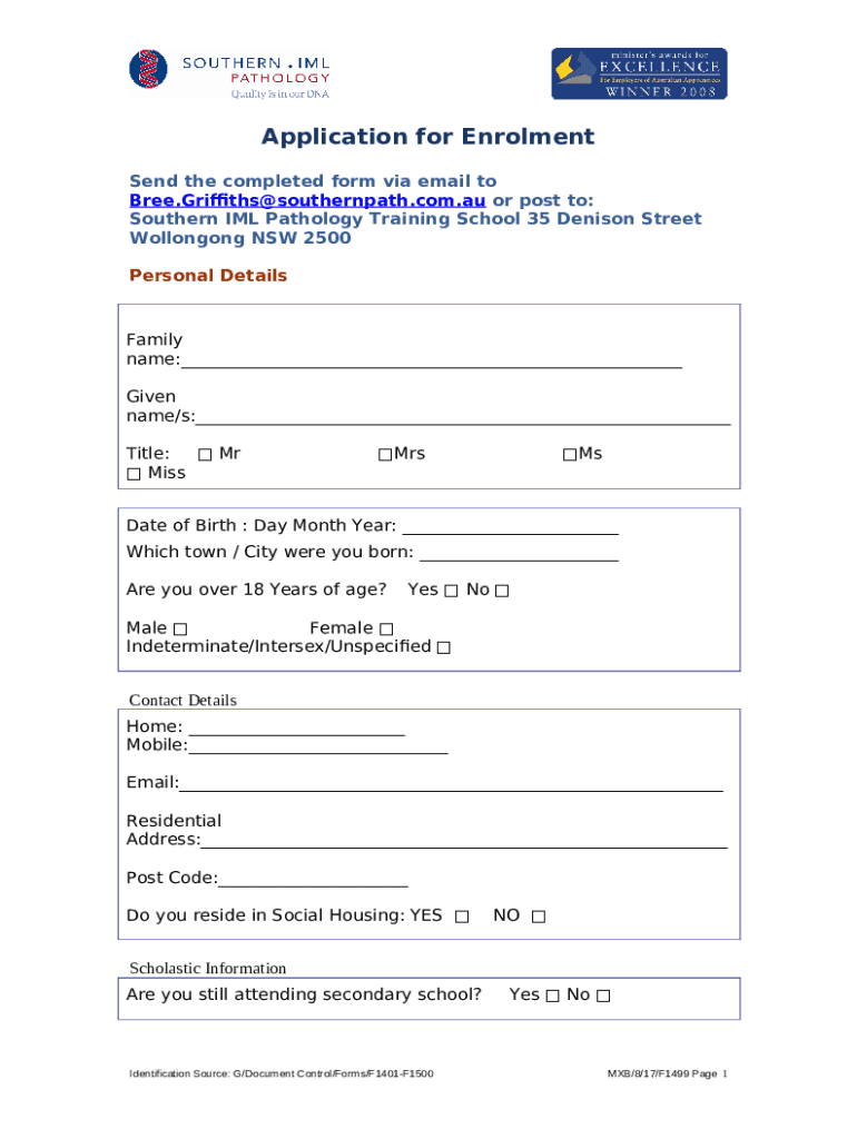 Frequently asked questions about F1499-4.doc - Application for Enrolment Send the completed ... template