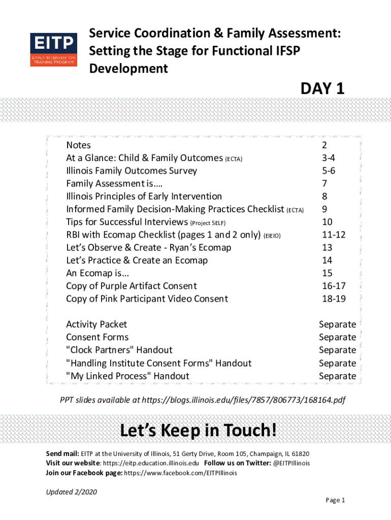 Service Coordination & Family Assessment: Setting the Stage for Functional ISP Developmental 1Notes At a Glance: Child & Family Outcomes (CTA) Illinois Family Outcomes Survey Family Assessment is.