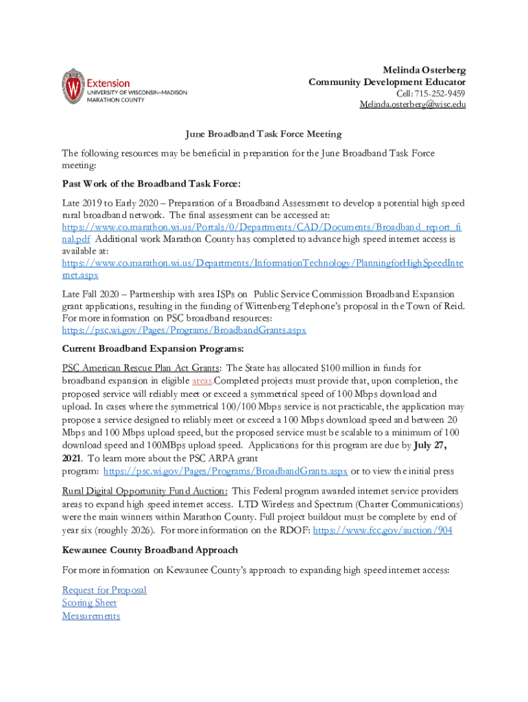 Get the free BROADBAND TASK FORCE - Marathon County