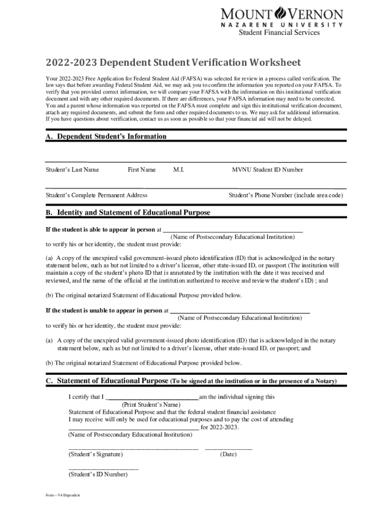 Get the free Financial Aid FormsMount Vernon Nazarene University