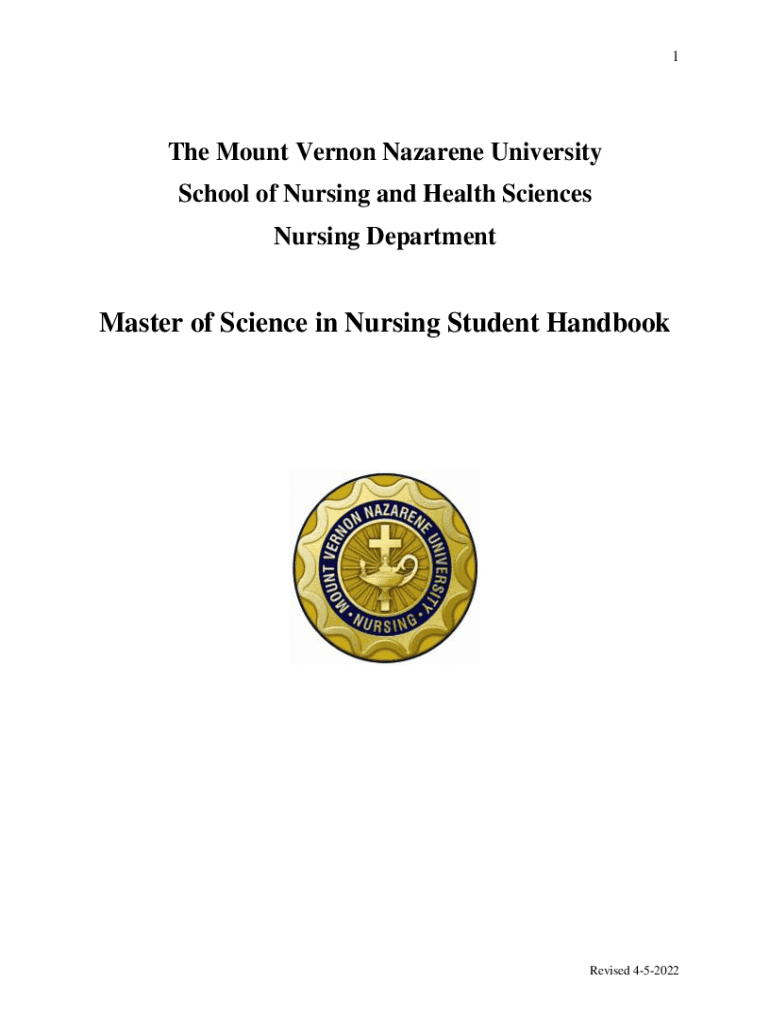 Nursing Department Master of Science in Nursing Student HandbookRevised 4520222