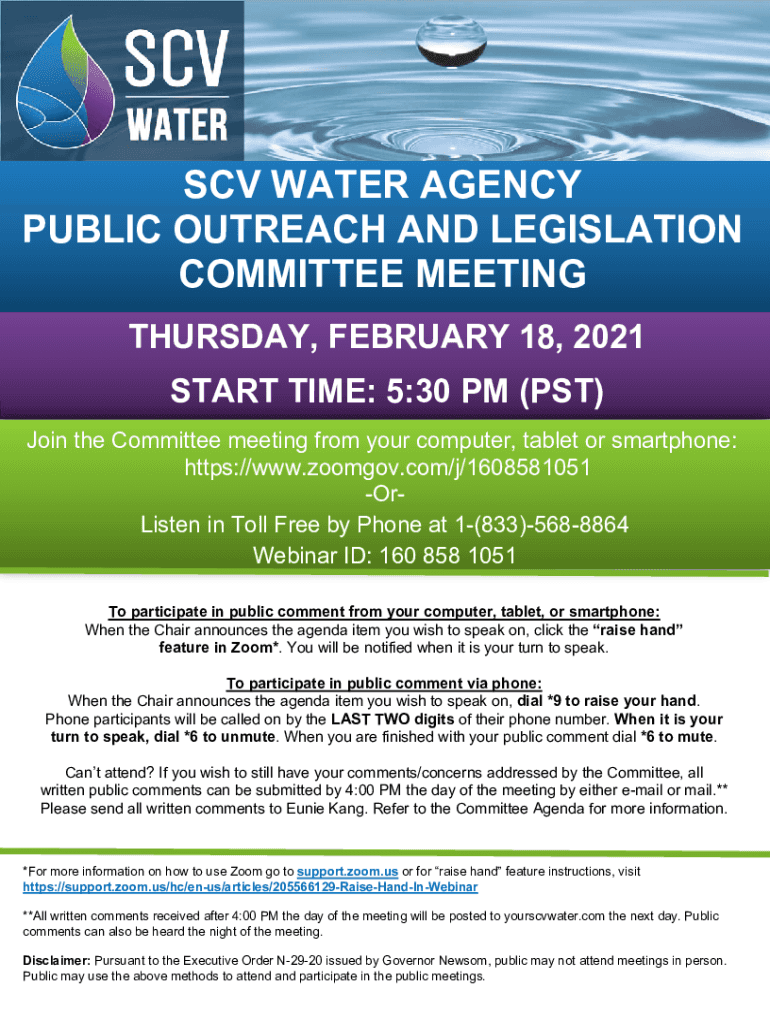 How to fill out scv water agency teleconference