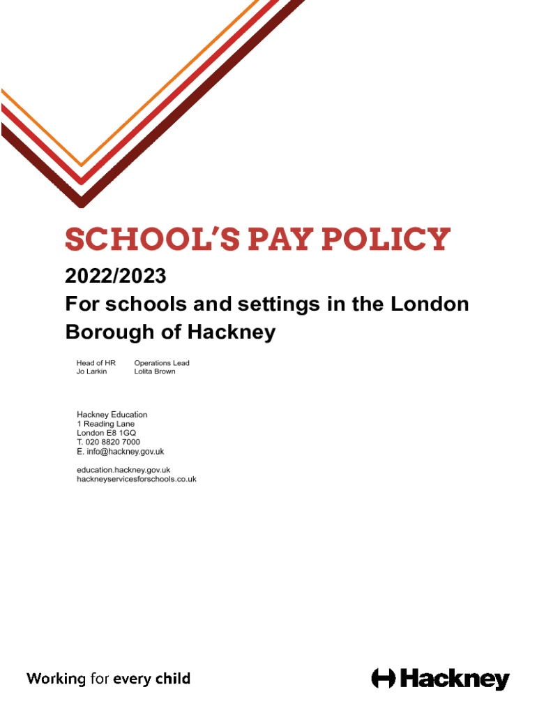 SCHOOLS PAY POLICY 2022/2023 For schools and settings in the London Borough of HackneySchools pay policy October 2022About this policy Purpose This document describes the Schools Pay Policy. Refer