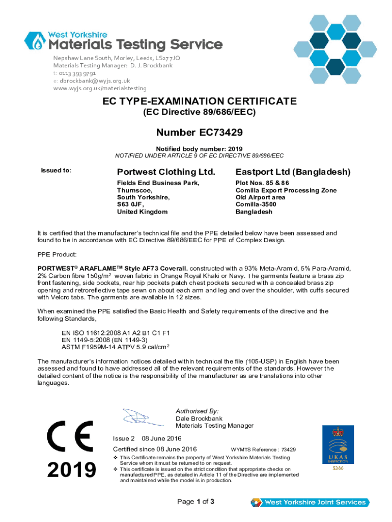 Get the free ec type-examination certificate - Total Protect