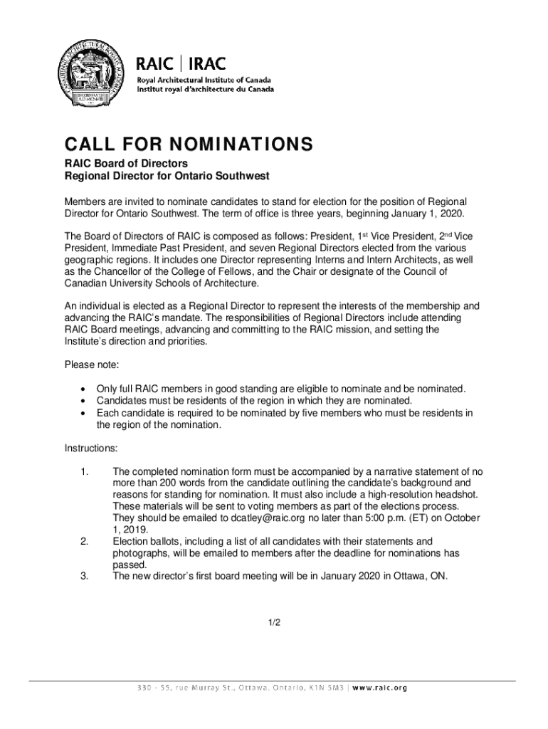 Get the free Nominations open for three RAIC Board of Directors positions