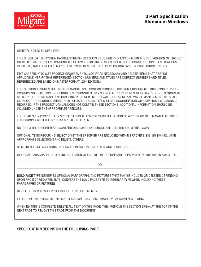 Template 3 Part Specification Aluminum Windows instructions