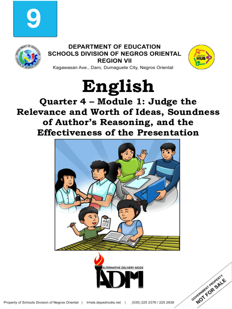 9 English Quarter 4 Module 1: Judge the Relevance and Worth of Ideas, Soundness of Authors Reasoning, and the Effectiveness of the Presentation English Grade 9 Alternative Delivery Mode Quarter 4