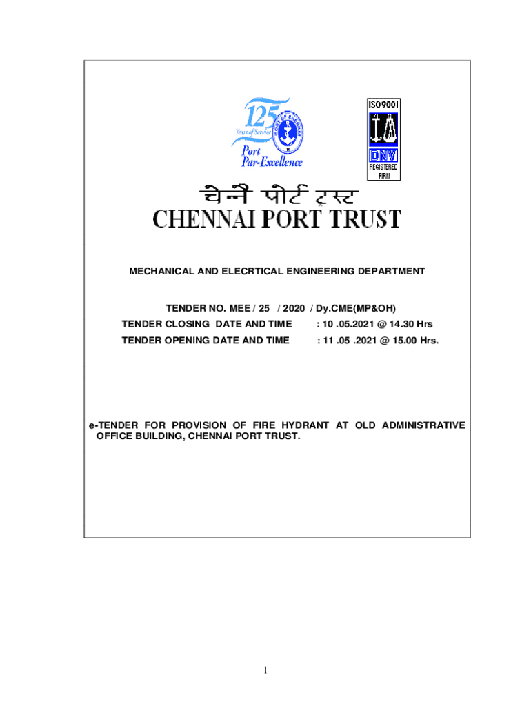 MECHANICAL AND ELECTRICAL ENGINEERING DEPARTMENTTENDER NO. ME / 25 / 2020 / Dy.CME(MPH) TENDER CLOSING DATE AND TIME: 10 .05.2021 @ 14.30 Pretender OPENING DATE AND TIME: 11 .05 .2021 @ 15.00 Hrs.
