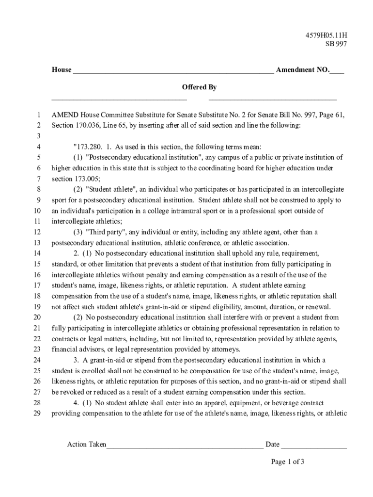 4579H05.11H SB 997 House ___ Amendment NO.___ Offered By ___ ___ 1 2 3 4 5 6 7 8 9 10 11 12 13 14 15 16 17 18 19 20 21 22 23 24 25 26 27 28 29AMEND House Committee Substitute for Senate Substitute