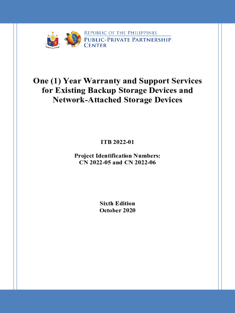 One (1) Year Warranty and Support Services for Existing Backup Storage Devices and NetworkAttached Storage Devices ITB 202201 Project Identification Numbers: CN 202205 and CN 202206Sixth Edition October
