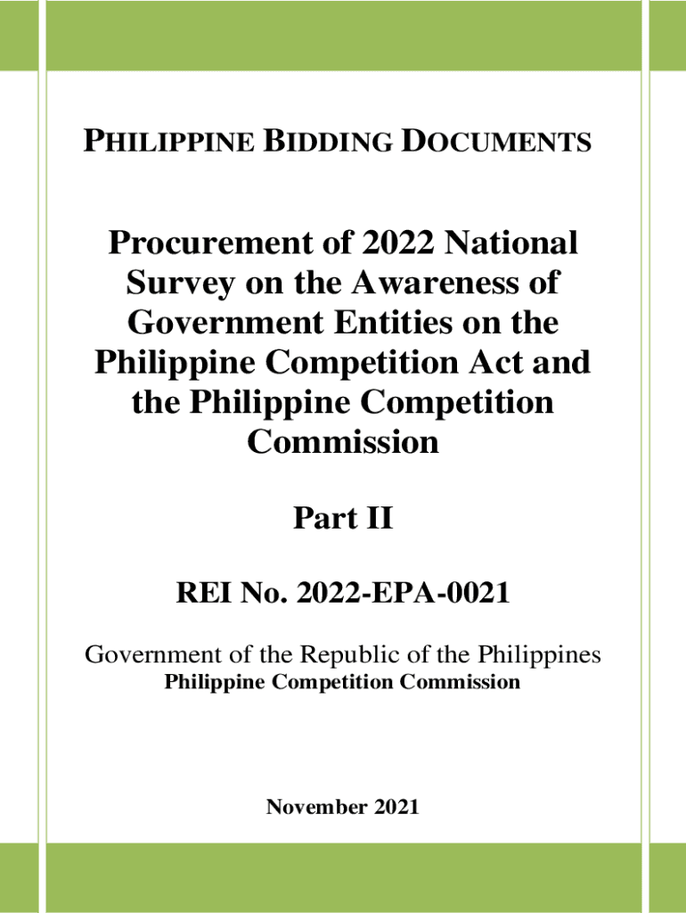 PHILIPPINE BIDDING DOCUMENTSProcurement of 2022 National Survey on the Awareness of Government Entities on the Philippine Competition Act and the Philippine Competition Commission Part II REI No.