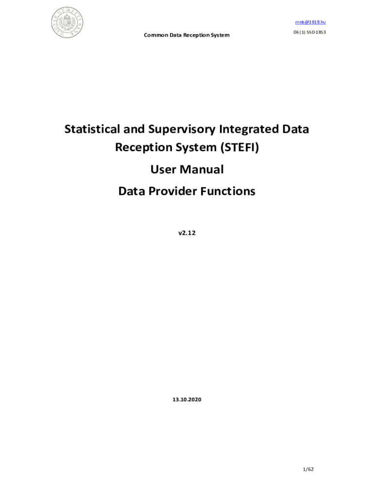 Mnb@1818.huCommon Data Reception System06 (1) 5501853Statistical and Supervisory Integrated Data Reception System (ST EFI) User Manual Data Provider Functions v2.1213.10.20201/62mnb@1818.huCommon