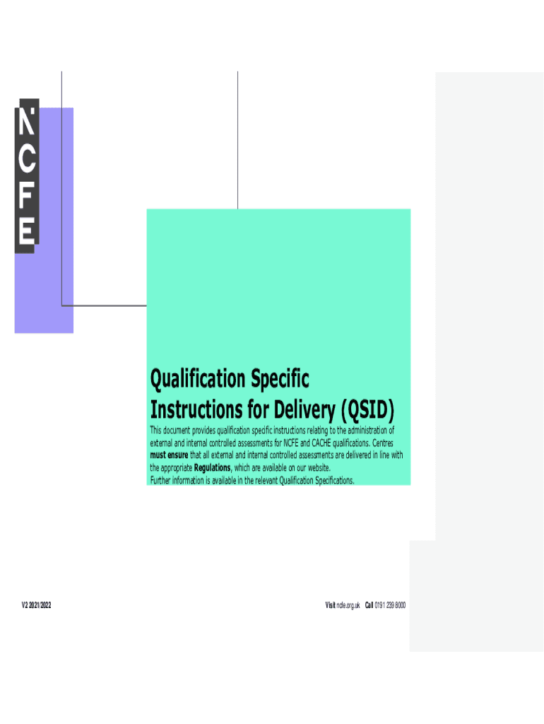 Qualification Specific Instructions for Delivery (QUID)This document provides qualification specific instructions relating to the administration of external and internal controlled assessments for