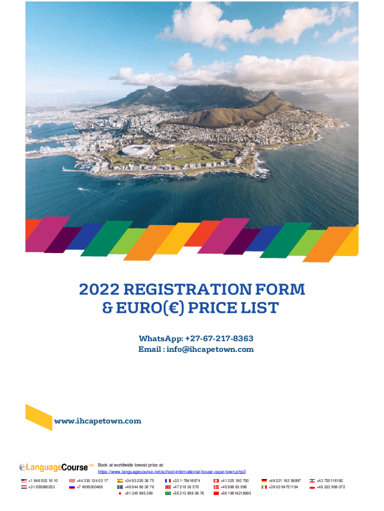 2022 REGISTRATION FORM & EURO() PRICE LIST WhatsApp: +27672178363 Email : info@ihcapetown.comwww.ihcapetown.comBook at worldwide lowest price at: https://www.languagecourse.net/schoolinternationalhousecapetown.php3