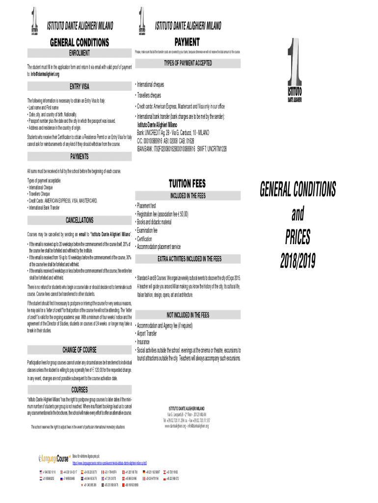 INSTITUTE DANTE ALIGHIERI MILANOISTITUTO DANTE ALIGHIERI MILANOPAYMENTGENERAL CONDITIONS