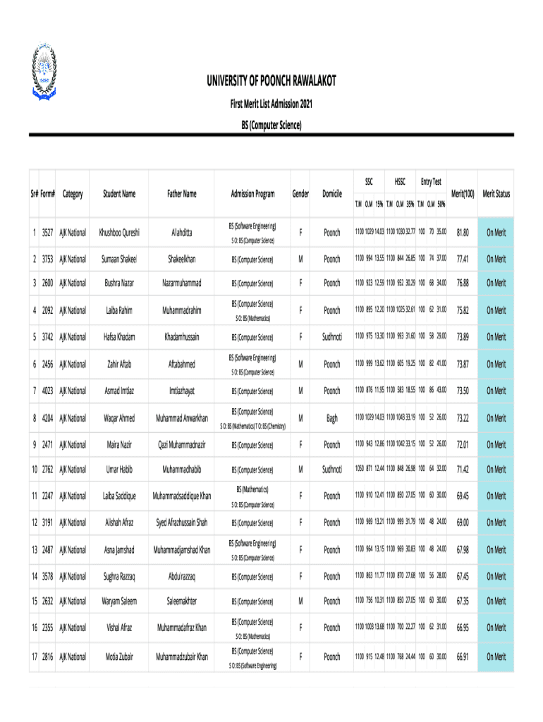 Get the free BS ( Computer Science) 1st Merit List
