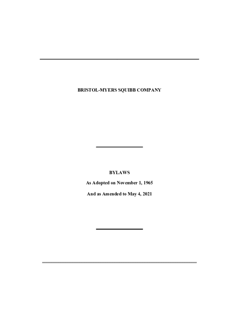 ___Bristol Myers Squibb COMPANY___BYLAWS As Adopted on November 1, 1965, And as Amended to May 4, 2021______I N D E X No.SUBJECTPage1. Principal Office .................................................................................................................
