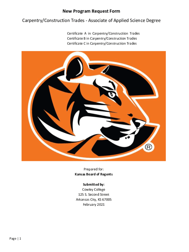 New Program Request Form Carpentry/Construction Trades Associate of Applied Science Degree Certificate A in Carpentry/Construction Trades Certificate B in Carpentry/Construction Trades Certificate