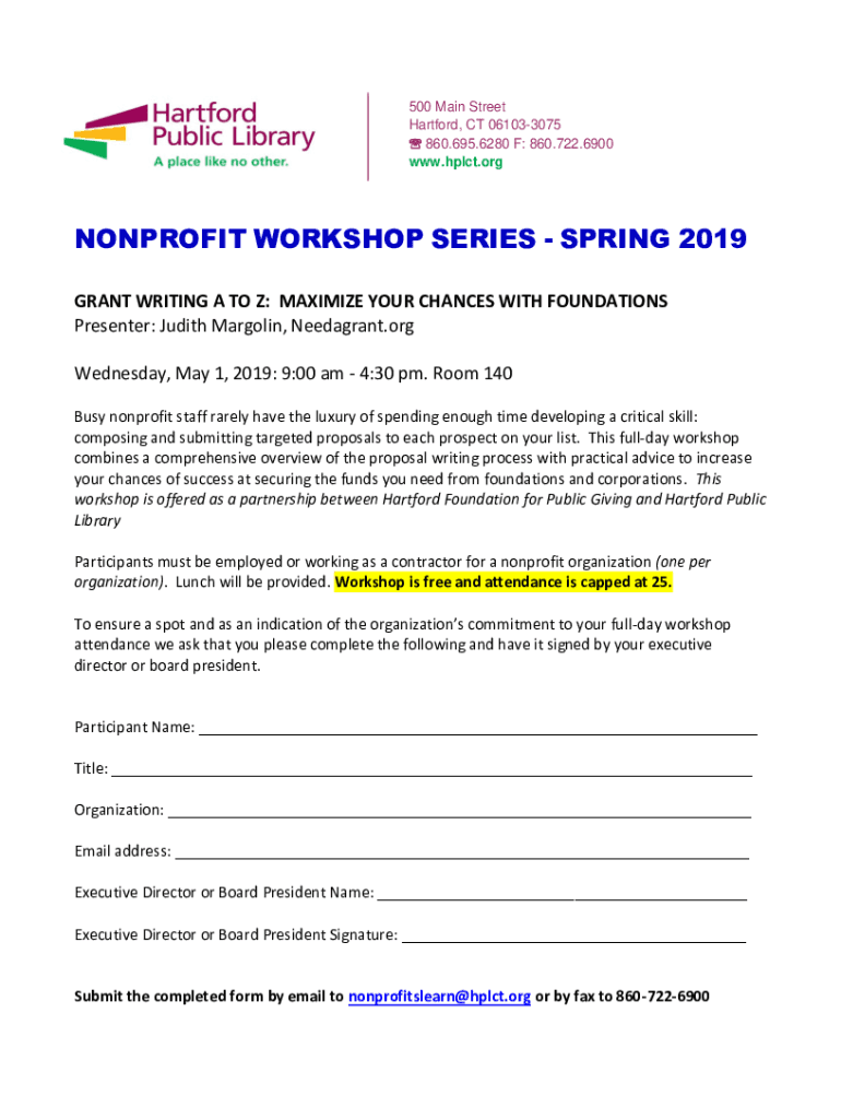 Get the free NONPROFIT WORKSHOPS SERIES - Hartford Public Library