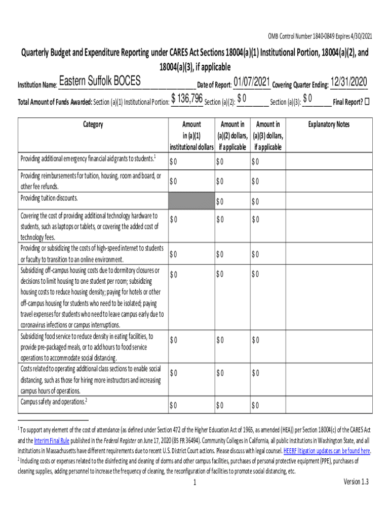 QuarterlyBudgetandExpenditureReportingunderCARESActSections18004(a)(1)Institutionalization,18004(a)(2), and