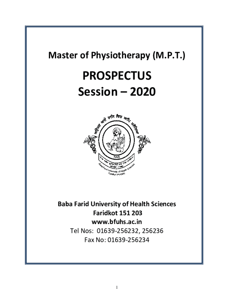 Master of Physiotherapy (M.P.T.)PROSPECTUS