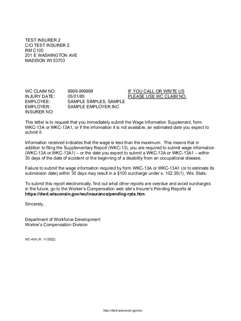 Get the free Worker's Compensation. This letter is to request that you immediately submit the Wag...