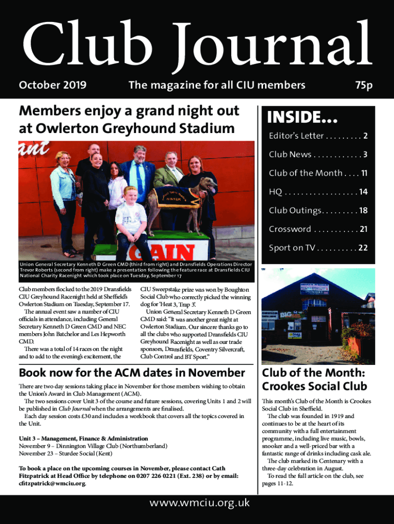 Club Journal October 2019The magazine for all CIU membersMembers enjoy a grand night out at Overton Greyhound Stadium75pINSIDE... Editors Letter. . . . . . . . . 2 Club News. . . . . . . . . . . .