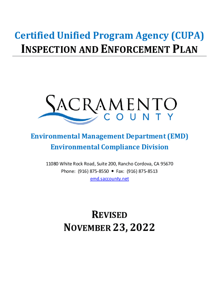 Certified Unified Program Agency (CUP) INSPECTION AND ENFORCEMENT PLANEnvironmental Management Department (EMD) Environmental Compliance Division 11080 White Rock Road, Suite 200, Rancho Cordova,