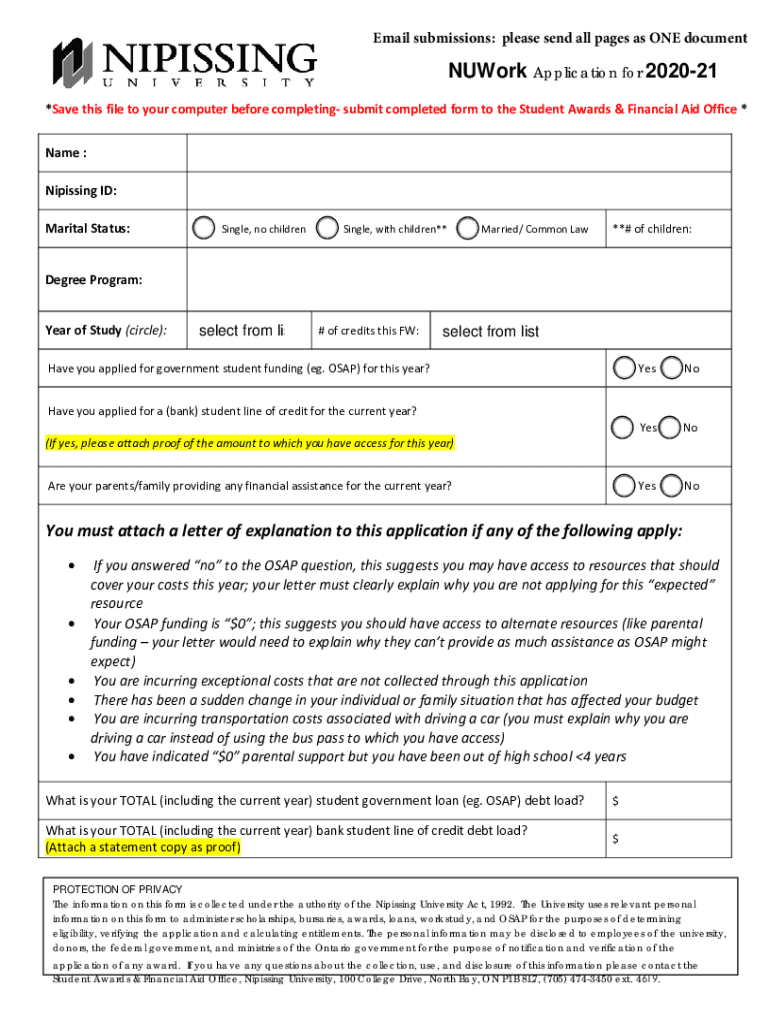 Work (Work study) Application for 2020/21***Do not complete the application until you have read the following***NOTE: This is NOT an application for employment it is an application to establish ELIGIBILITY
