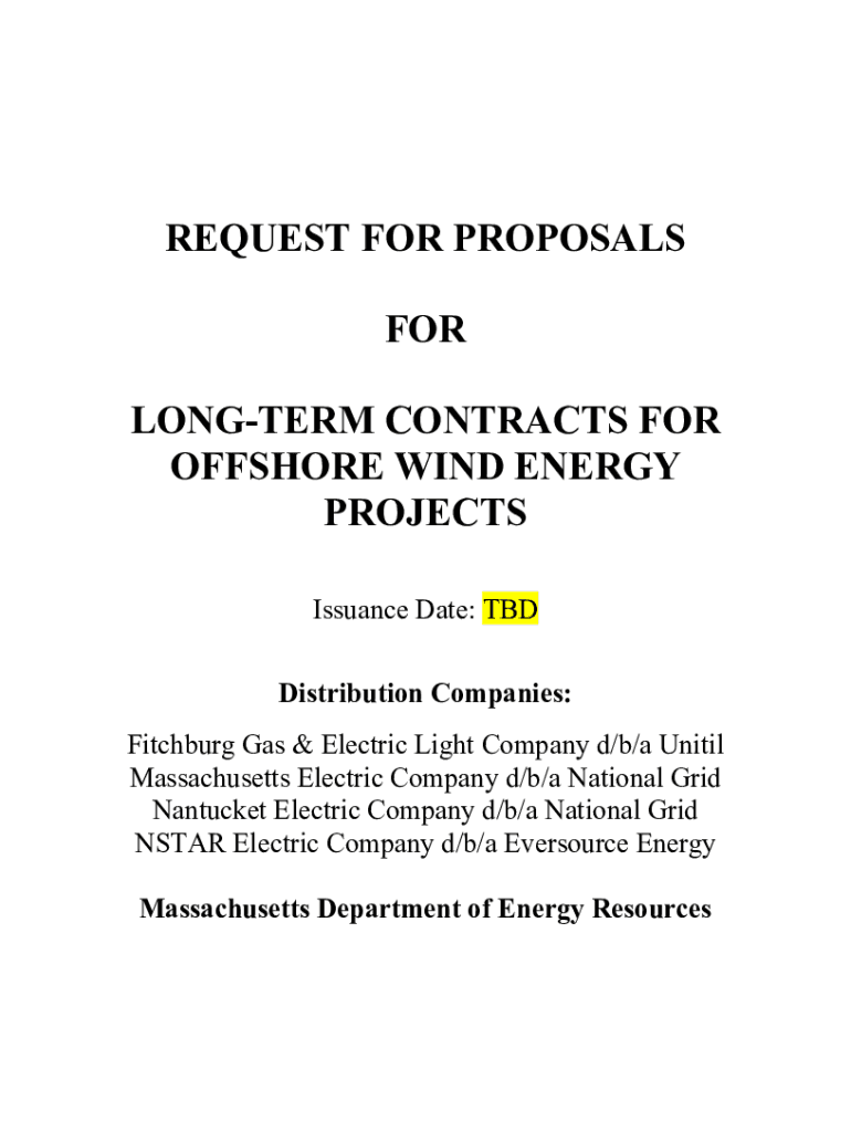 REQUEST FOR PROPOSALS FOR LONGER CONTRACTS FOR OFFSHORE WIND ENERGY PROJECTS Issuance Date: TBD Distribution Companies: Fitchburg Gas & Electric Light Company d/b/an Until Massachusetts Electric Company