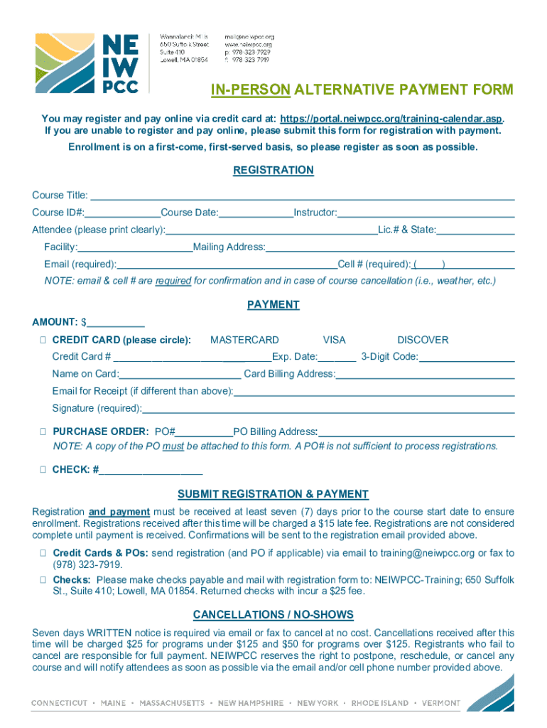 Get the free IN-PERSON ALTERNATIVE PAYMENT FORM - neiwpcc