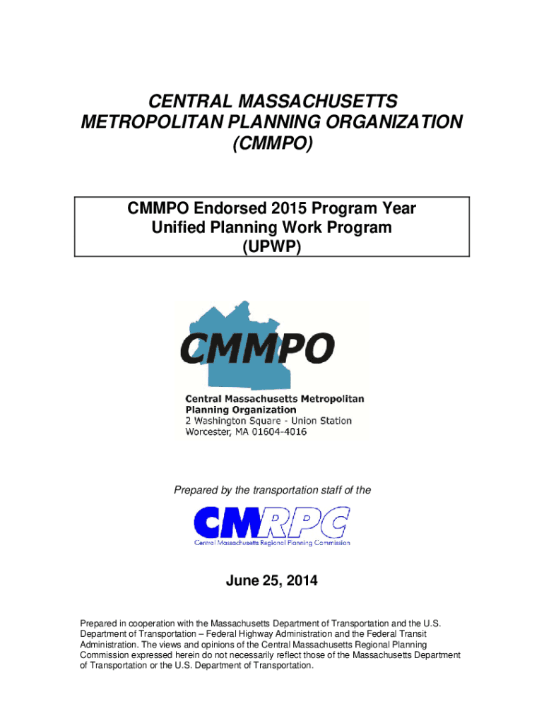 CENTRAL MASSACHUSETTS METROPOLITAN PLANNING ORGANIZATION (COMPO)COMPO Endorsed 2015 Program Year Unified Planning Work Program (UPP)Prepared by the transportation staff of the June 25, 2014, Prepared