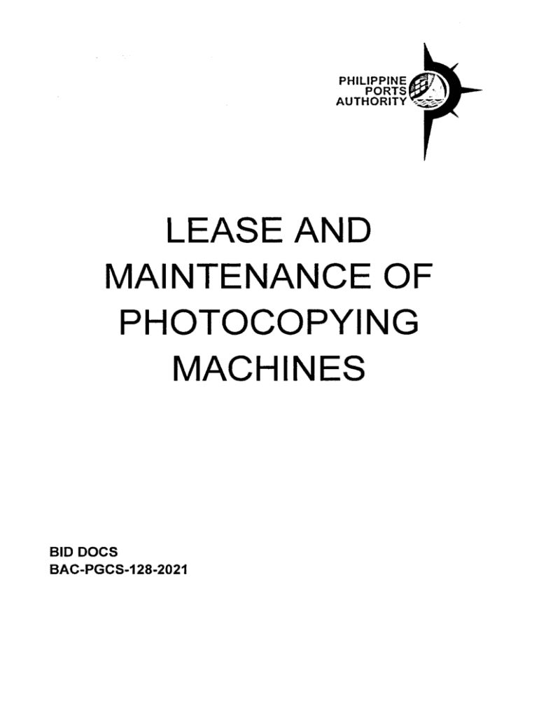 PHILIPPINE PORTS AUTHORITYLEASE AND MAINTENANCE OF PHOTOCOPYING MACHINES BID DOCS BACPGCS1282021Table of Contents Glossary of Acronyms, Terms, and Abbreviations............................................................