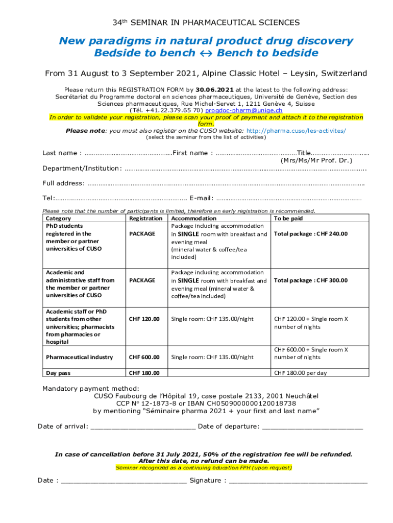 34th SEMINAR IN PHARMACEUTICAL Sciences paradigms in natural product drug discovery