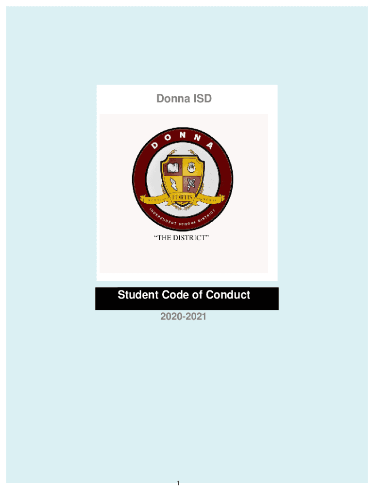 Donna Student Code of Conduct 202020211Dear Parent/Guardian: This Student Code of Conduct provides information regarding expectations for student behavior and consequences for misconduct. Please read