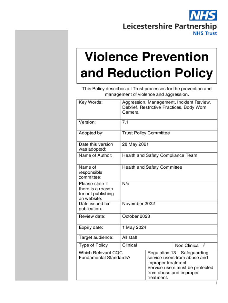 Identify potential risk factors for workplace violence in healthcare settings such as working with patients who have a history of aggression or mental health issues.