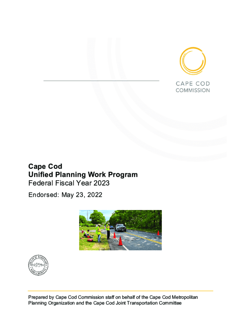 Cape Cod Unified Planning Work Program Federal Fiscal Year 2023 Endorsed: May 23, 2022Prepared by Cape Cod Commission staff on behalf of the Cape Cod Metropolitan Planning Organization and the Cape