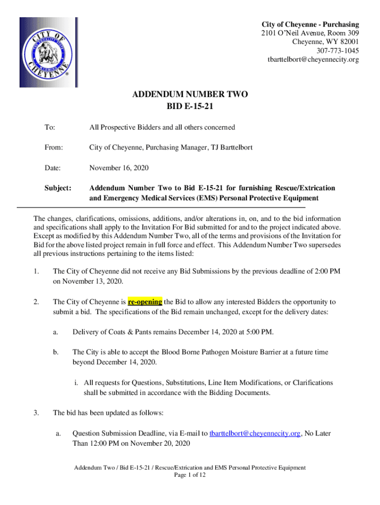 Get the free ADDENDUM NUMBER TWO BID E-15-21 - City of Cheyenne