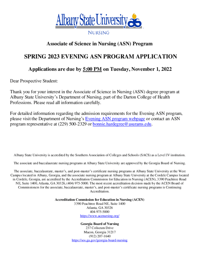 Get the free Evening ASN Application - Albany State University