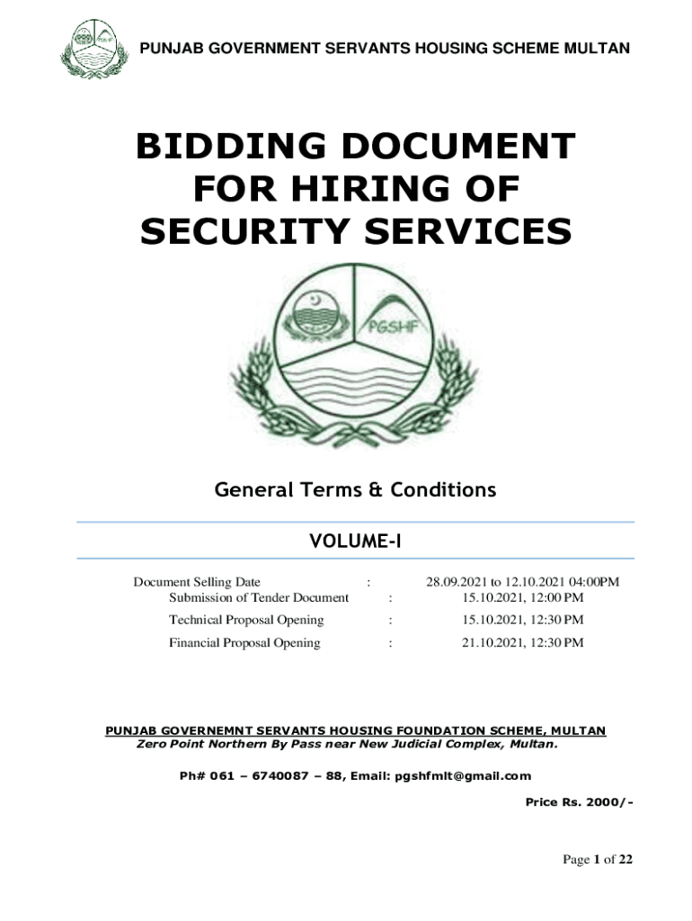 PUNJAB GOVERNMENT SERVANTS HOUSING SCHEME MULTANBIDDING DOCUMENT