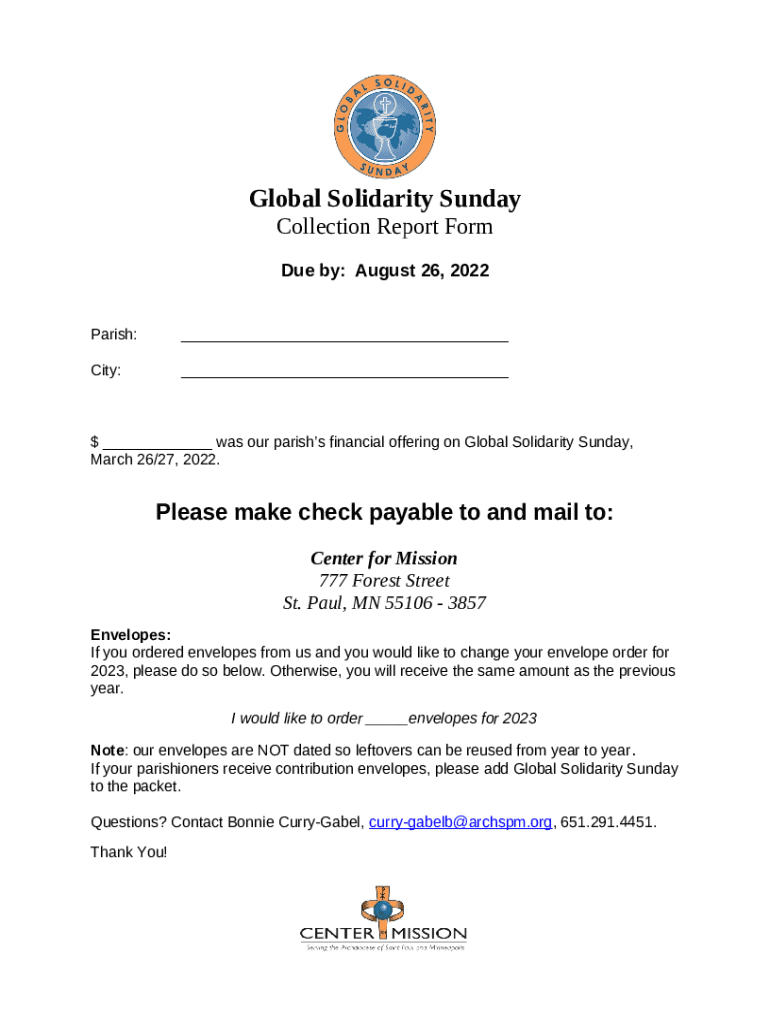 Global Solidarity Sunday Weekend is March 13-14 template instructions
