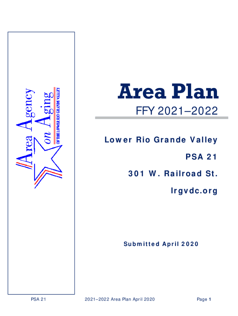 Area Plan FLY 20212022Lower Rio Grande Valley PSA 21 301 W. Railroad St. logic. Resubmitted April 2020PSA 2120212022 Area Plan April 2020Page 1Table of Contents Table of Contents ...................................................................................